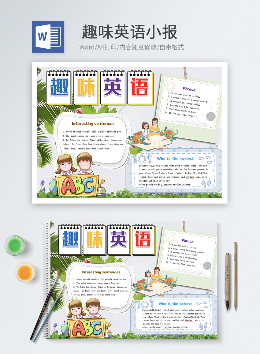 趣味英语word小报图片 正版模板下载401290219 摄图网