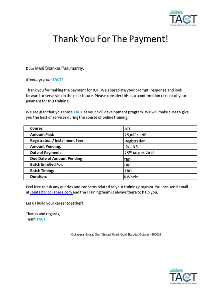 Thank You For Your Prompt Confirmation
